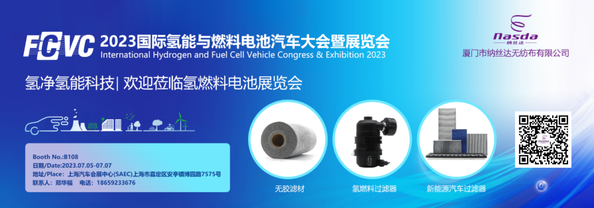 邀请函|氢净 净无止境|2023国际氢能与燃料电池汽车大会暨展览会诚邀您的到来纳丝达 厦门市纳丝达无纺布有限公司 2023-06-28 17:26 发表于福建欢迎扫码了解更多+复制搜一搜分享收藏划线人划线 -